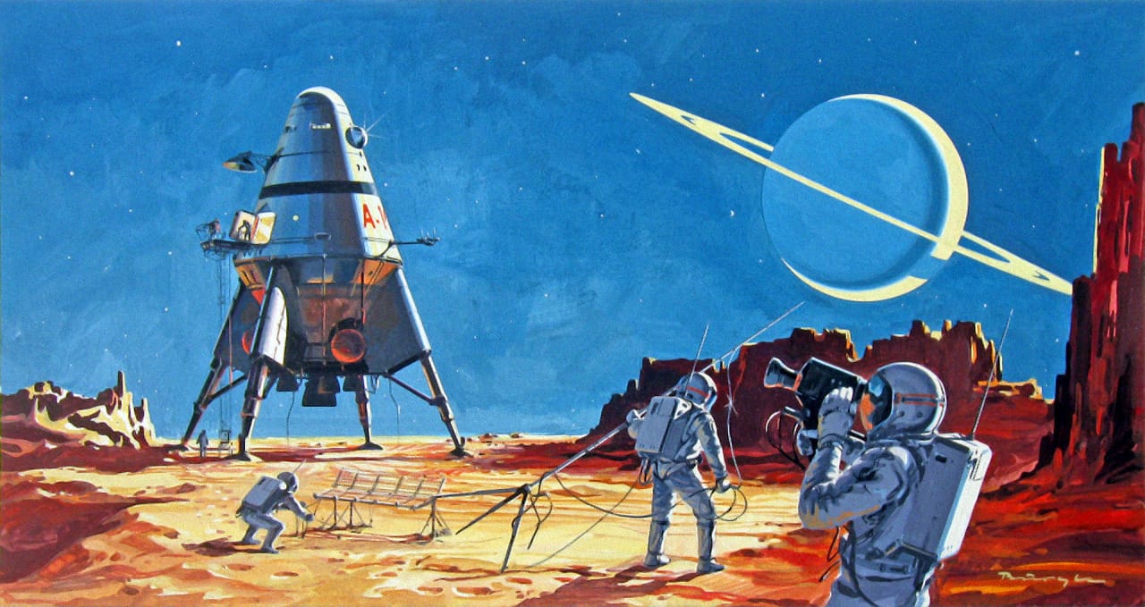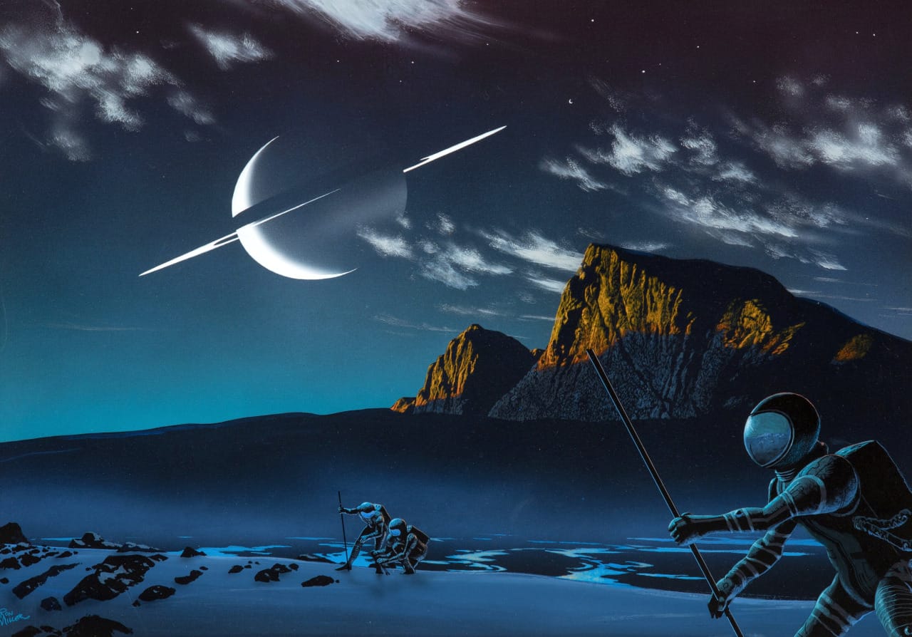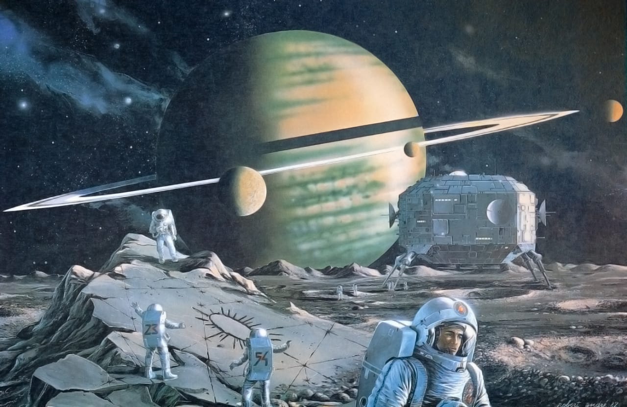 And since we're on the topic of humans discovering weird alien stuff on a Saturn moon, here's a 1982 illustration by Robert Andre.