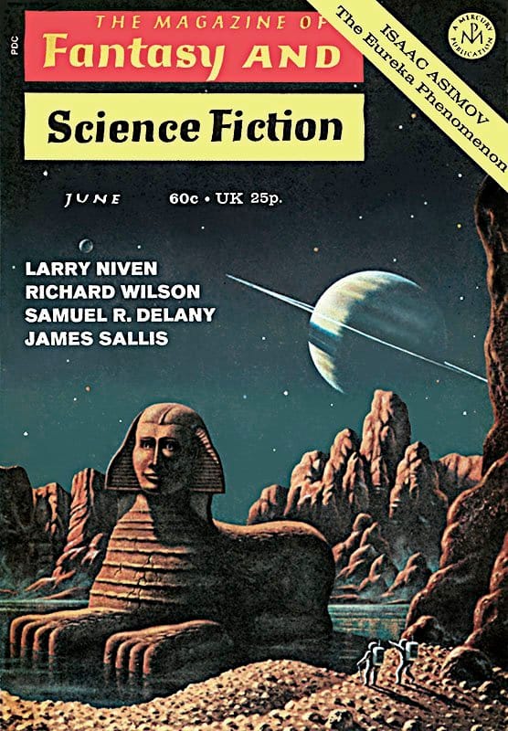 Plus, here's the very first science fiction illustration Hardy published: A sphinx is found on Titan, for F&SF in 1972.
