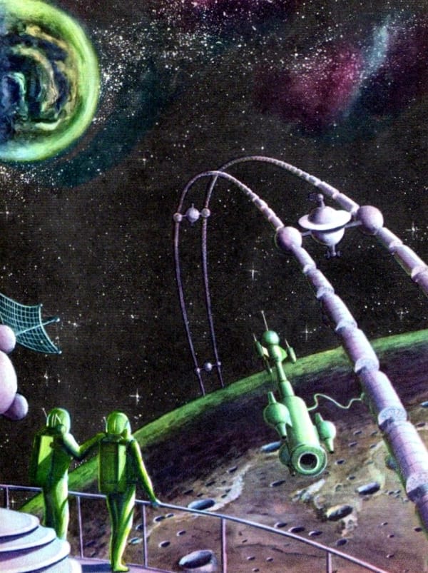 I love the astronauts exploring the rings in this illustration by Sydney Jordan.