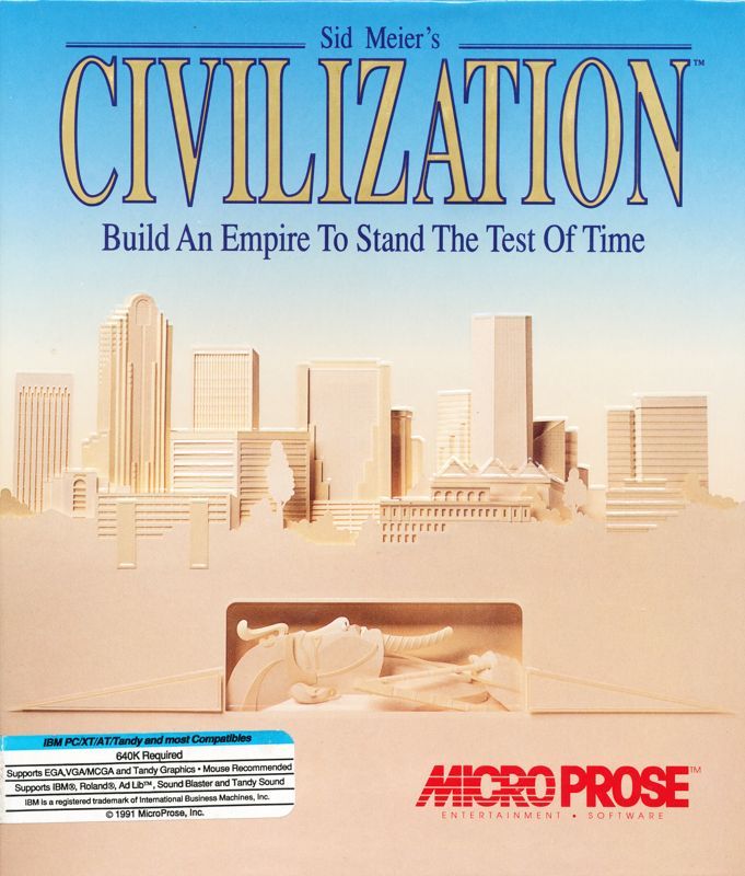 "The box art itself wasn't made for Civilization. It's a promotional poster for the traveling Ramesses the Great exhibit at the Mint Museum in Charlotte, North Carolina in 1988-1989. The city skyline in the background is that of Charlotte in 1988. Most of the buildings shown are still present."