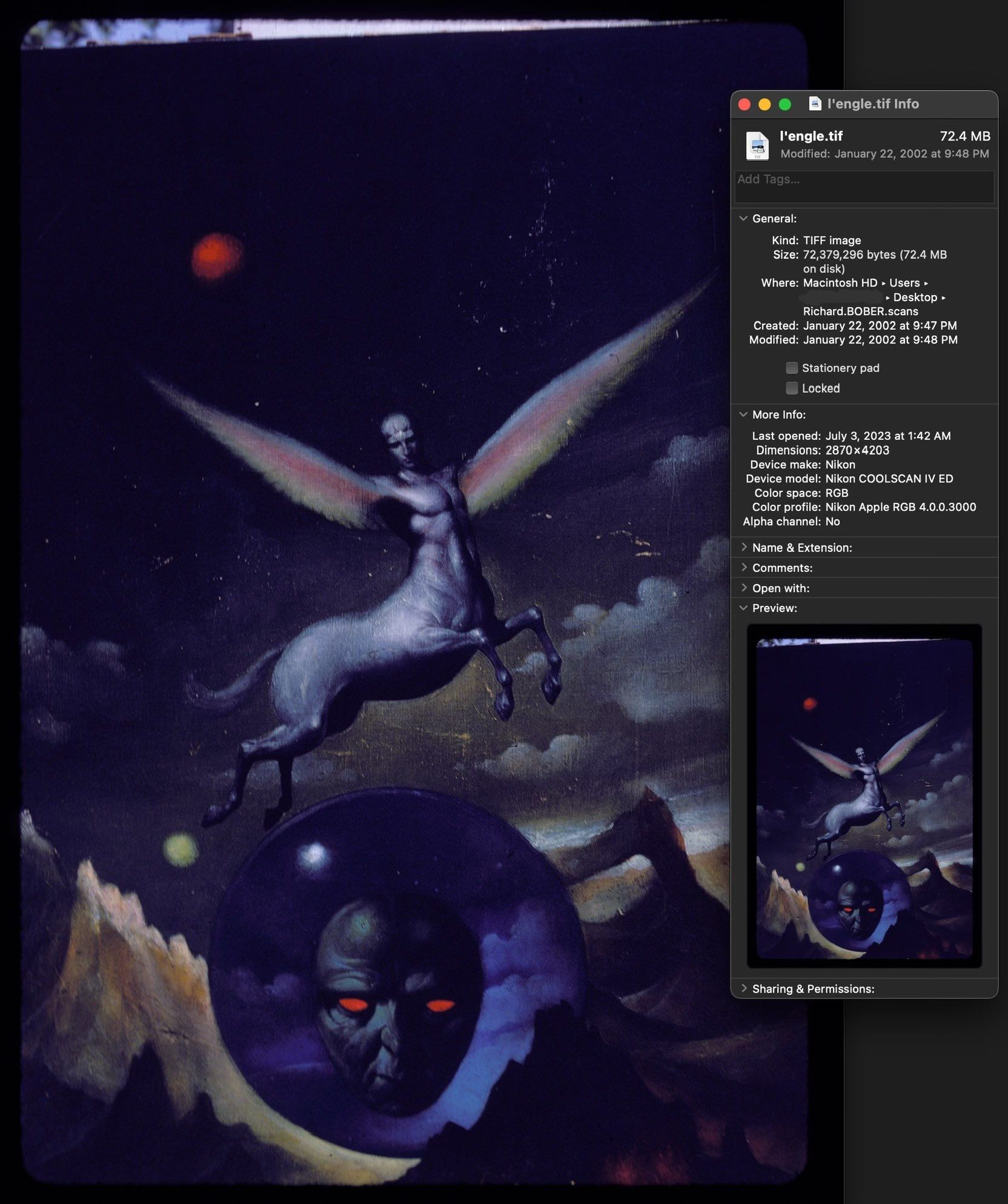 Here it is among the photos he took to document his work, as described during the podcast starting at around 36:20. Those other paintings are pretty sick! Thanks to Leon Bober and Amory for these images, which I don't think you can find in a size this large outside this newsletter: