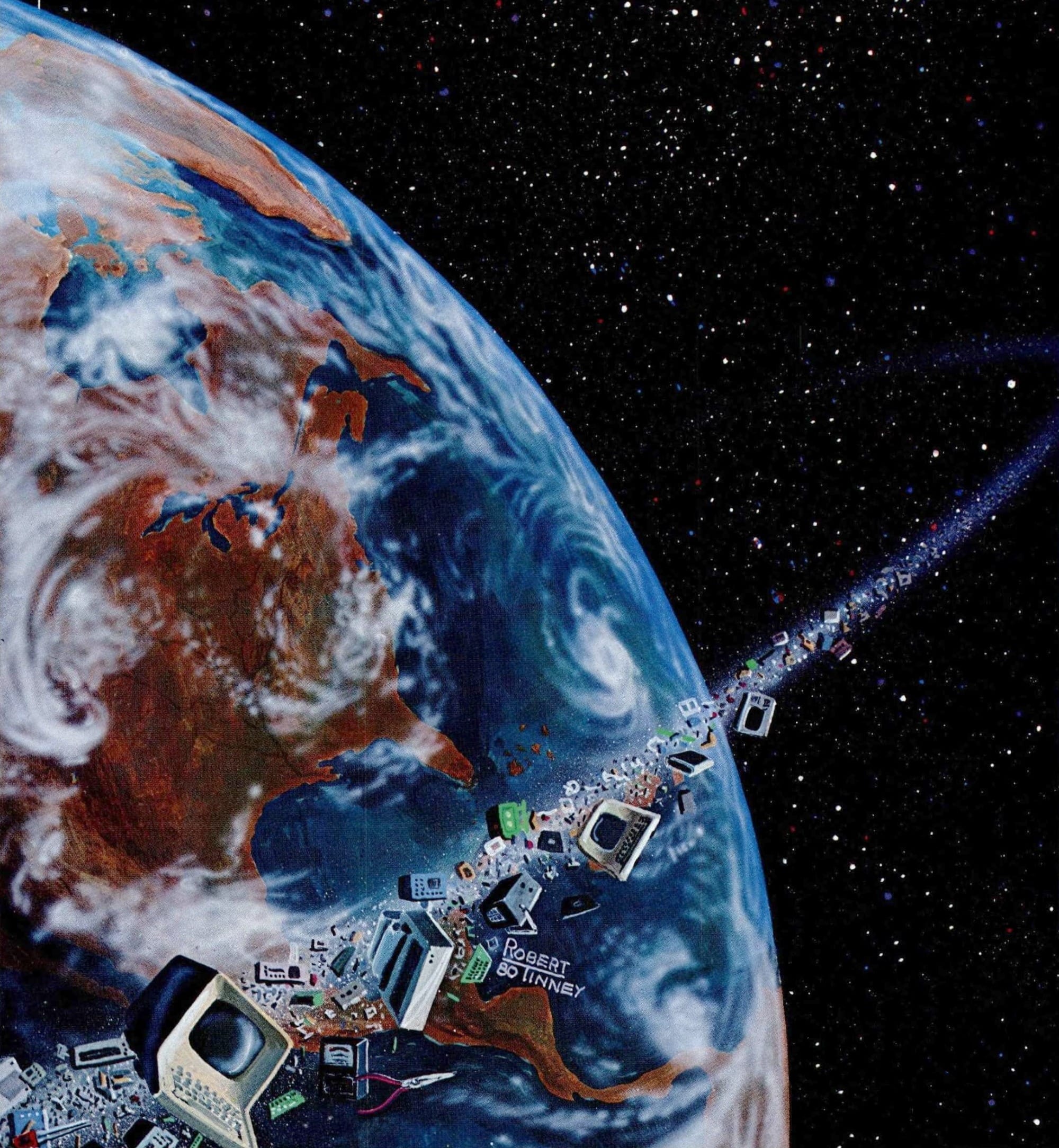 It's a better space-trash system than most planets can boast: Robert Tinney's fall 1980 cover to the Priority One Electronics Engineering Selection Guide is a more realistic vision of the future for the planet Earth.