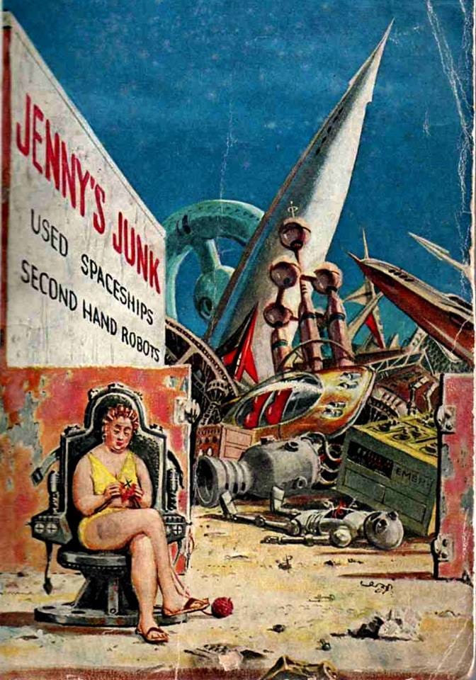 This uncredited 1967 cover to Charles Platt's Garbage World is another great example of a cool junkyard.