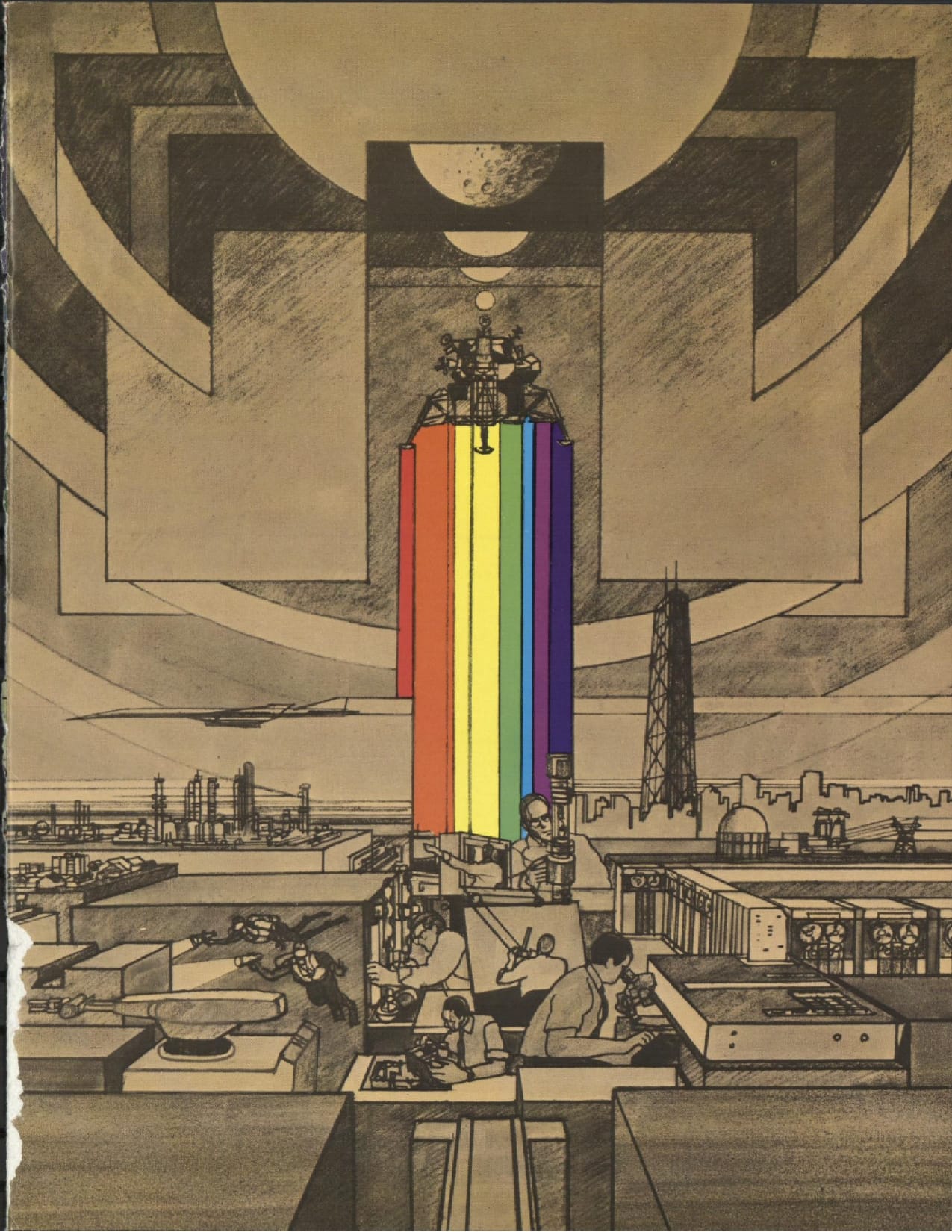 "I was really surprised after reading through the previous decade-and-a-half of reports to see such a drastic, and artistic, shift in Condec’s approach to the current standing of its business to shareholders. Why this was can most likely be attributed to the national excitement surrounding the successful landing of Apollo 11 on the Moon (which took place eleven days before the end of Condec’s 1968-1969 fiscal year) and the fact that the corporation played an albeit small role in producing the technology for such a feat. Condec deliberately framed the accomplishment in relation to their other lines of business, and in typical American fashion, connected their high-tech products with the very notion of 'progress' itself."