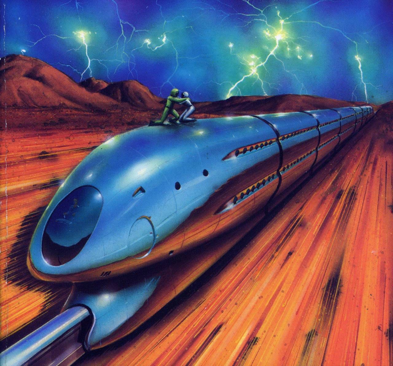 The great Peter Elson did this 1998 bullet train illustration for a Doctor Who novel, Tempest, by Christopher Bulis.