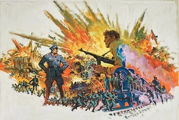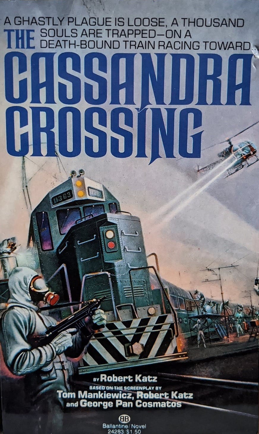 The uncredited cover art to The Cassandra Crossing, novelized in 1977 by Robert Katz, is taken right off of the original movie poster. This is much more in the vein of adventure pulp illustration, which really deserves an entire newsletter of its own (RIP Mort Künstler).