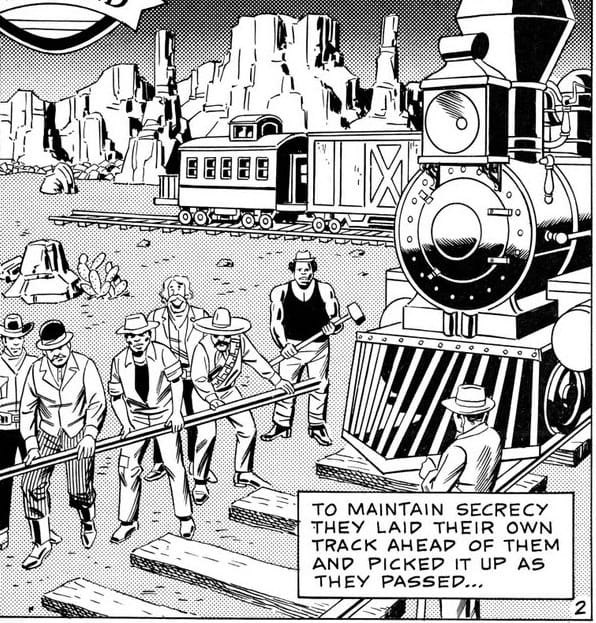 Before we leave our adventure pulp detour, however, let's check out this example of a Swipe – the term for when one artist traces over another's work without credit. It's barely related to trains, but I don't need much of an excuse to show off a good Swipe.