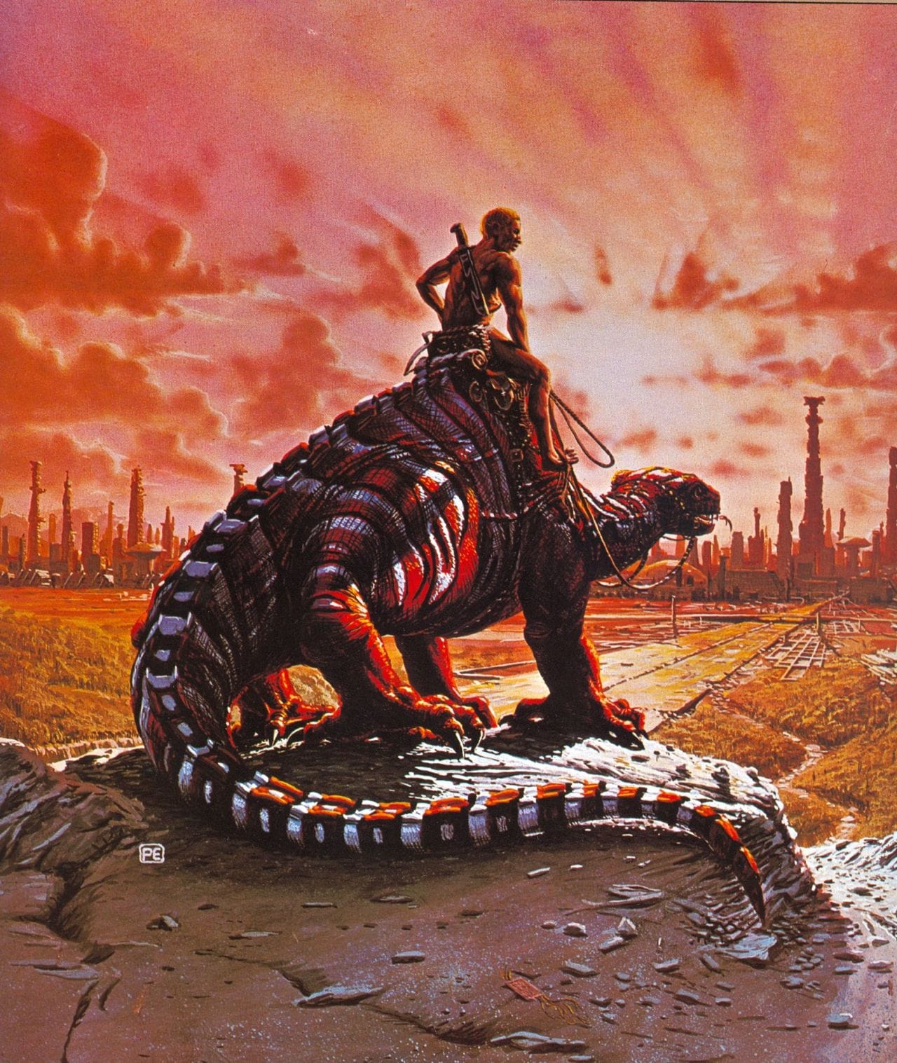 Bruce Pennington has a fairly bovine alien steed here, but with sort of a lizard-like head.