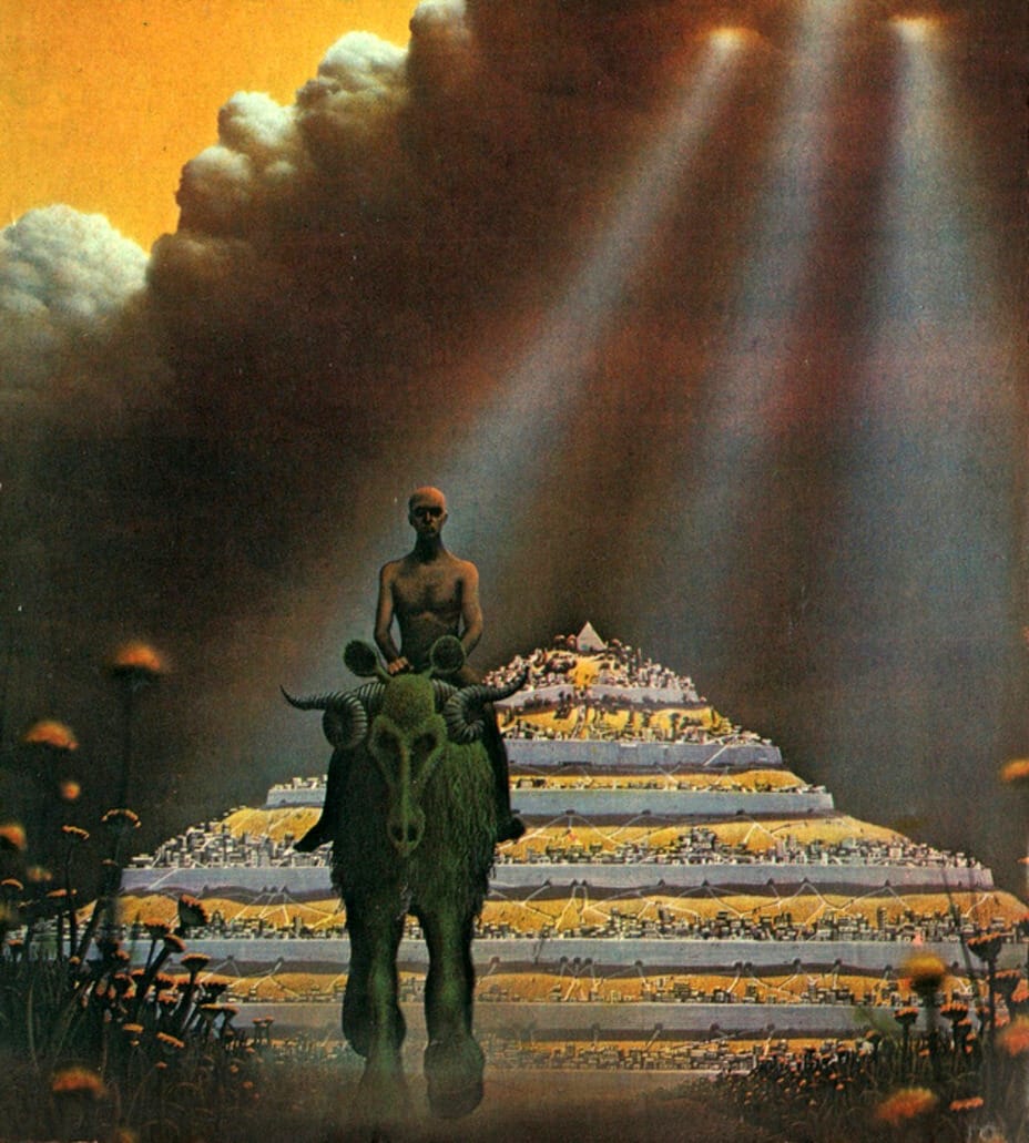 You can always saddle up your local gastropod, as Rodney Matthews illustrates for this 1976 cover.