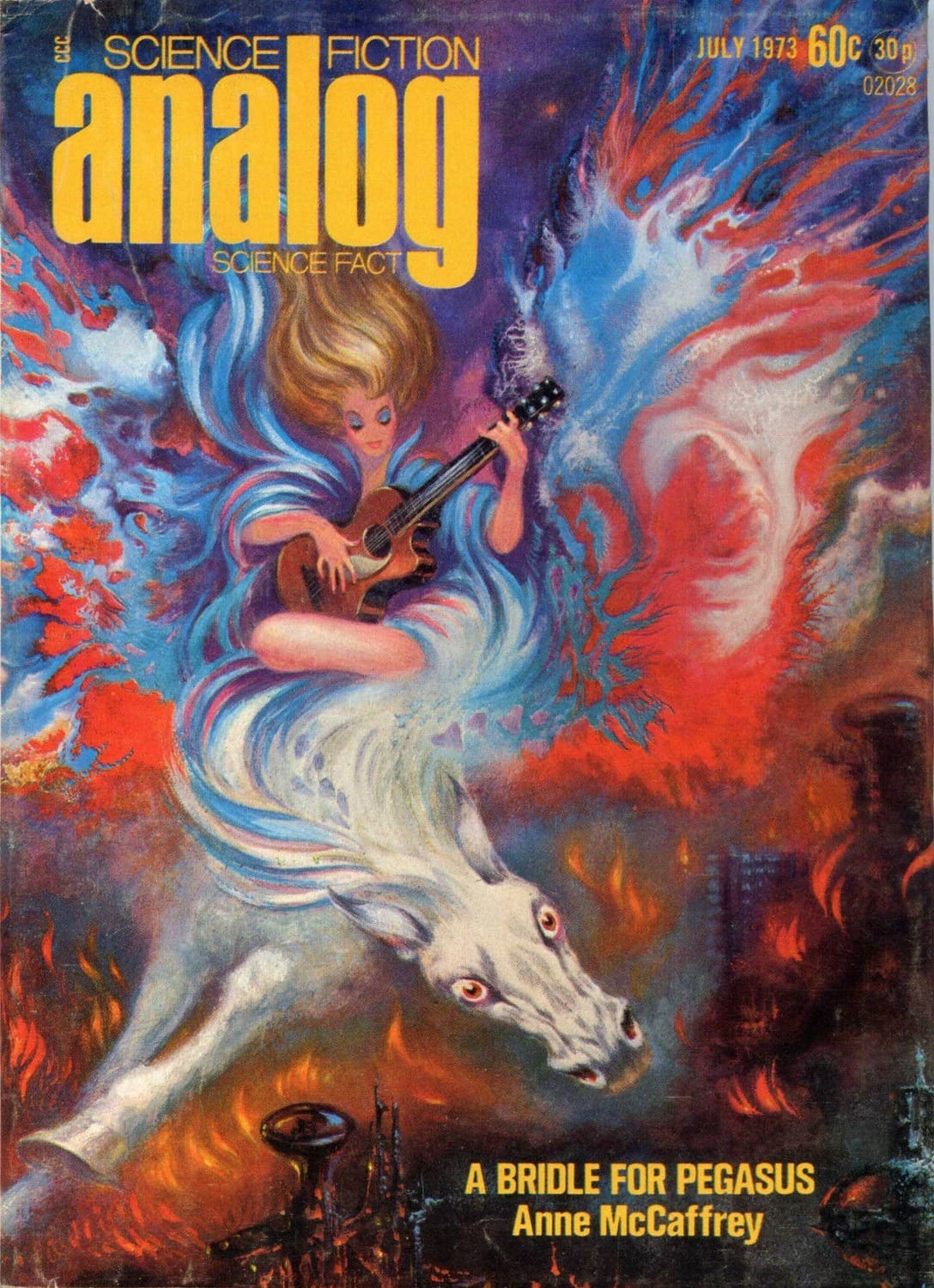 I love Frank Kelly Freas' surrealistic interpretation of Pegasus for the July 1973 cover to Analog.